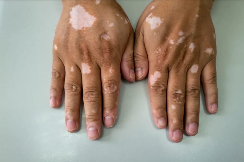 The white patches that we are mentioning here are vitiligo, which is an acquired skin disorder . So basically, there are a few cells in our body called pigmentation cells or melanocytes that give our skin the color, be it dusky , fair, etc. In this disease, there will be an absence of such cells, and hence that area will become white and appear as patches to us.