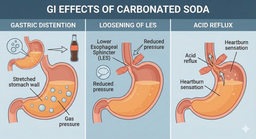 Curiously, some research finds that reflux symptoms rise even when acid exposure objectively does not. So carbonation increases the sensation of reflux and fullness, even if measurable reflux episodes are not dramatically higher. In other words, what you feel is real, even if the meter is unimpressed.
