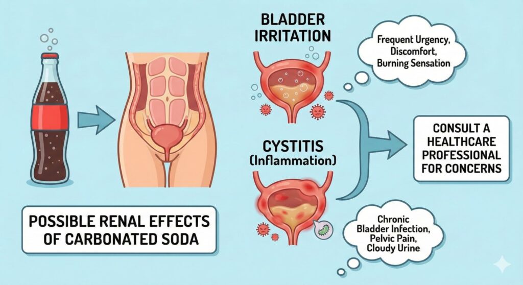 Carbonated beverages, diet or regular, can irritate the bladder lining in some people. Those with interstitial cystitis, frequent urinary urgency or overactive bladder often notice worse symptoms after fizzy drinks. This is due to acidity, CO₂ stimulation and sometimes sweeteners acting as irritants.